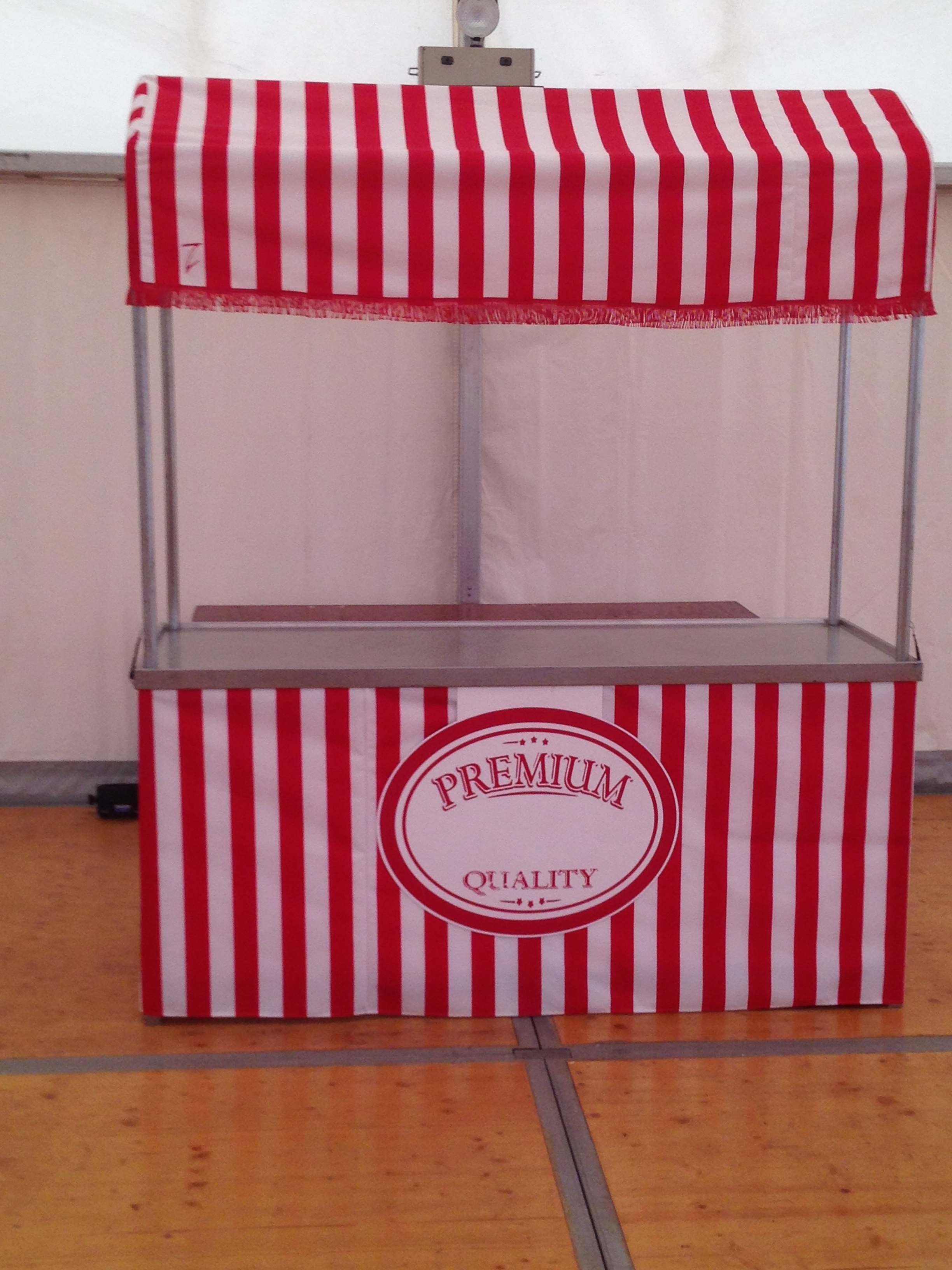 Marktstand „Nostalgisch“ 2,00 x 0,80 x 2,30m mit rot- weissem Baldachin